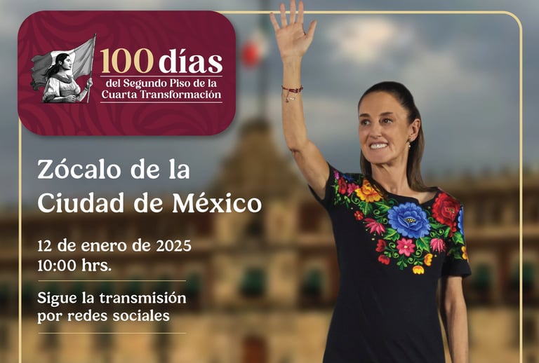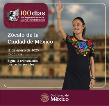 Este 12 de enero de 2025 será recordado como un día de esperanza y unidad. La presidenta de México, la Dra. Claudia Sheinbaum Pardo, celebrará sus primeros 100 días de gobierno con un evento emblemático en la Ciudad de México, donde presentará los avances y desafíos de su administración, enmarcados en el espíritu transformador que ha cambiado el rostro del país.