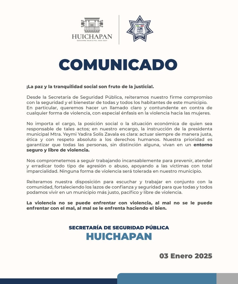 Este incidente subraya el compromiso de Huichapan con el combate a la violencia de género y la promoción de un entorno seguro y respetuoso para todos sus habitantes. La presidenta municipal instó a la ciudadanía a denunciar cualquier acto de violencia, recordando que el trabajo conjunto entre gobierno y sociedad es clave para erradicar estas conductas.
