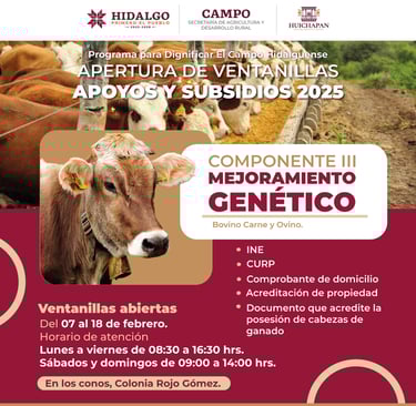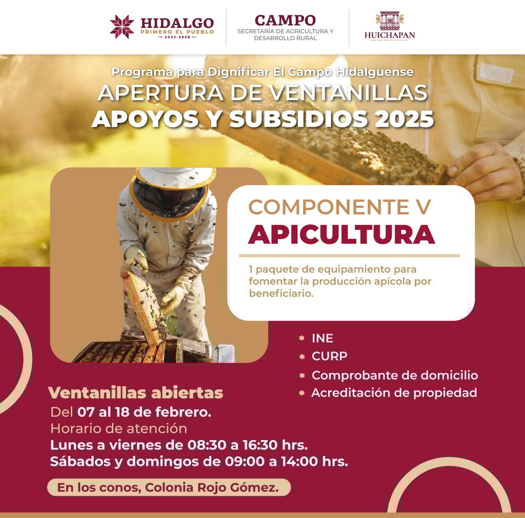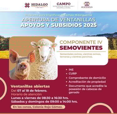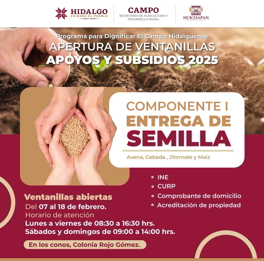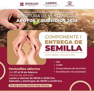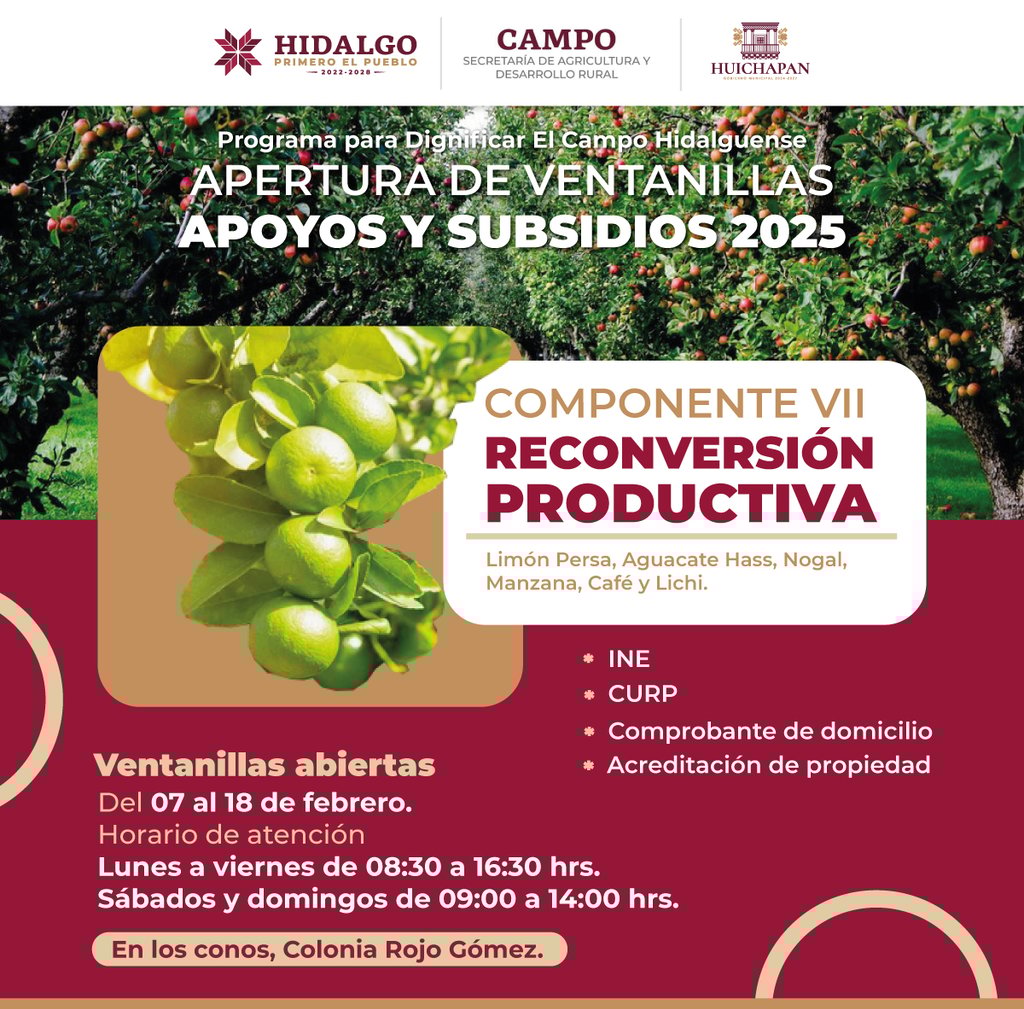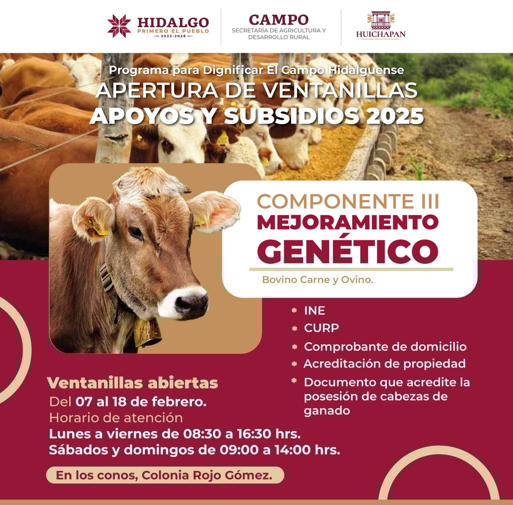 El Gobierno Municipal de Huichapan y el Gobierno del Estado de Hidalgo invitan a productores y campesinos a inscribirse en los apoyos y subsidios 2025 para fortalecer el sector agropecuario.