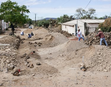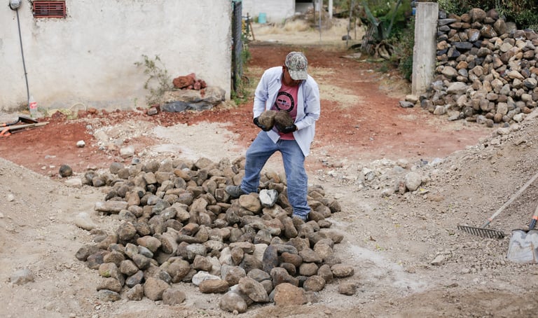 A través de la Secretaría de Obras Públicas, una cuadrilla de trabajadores realiza un meticuloso trabajo artesanal, colocando piedra por piedra para crear vialidades que no solo mejoran la conectividad, sino que también embellecen el entorno y contribuyen a la sostenibilidad ambiental. Este proceso, aunque laborioso, refleja el compromiso del municipio con soluciones que respeten la tradición local y el medio ambiente.