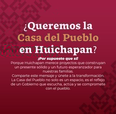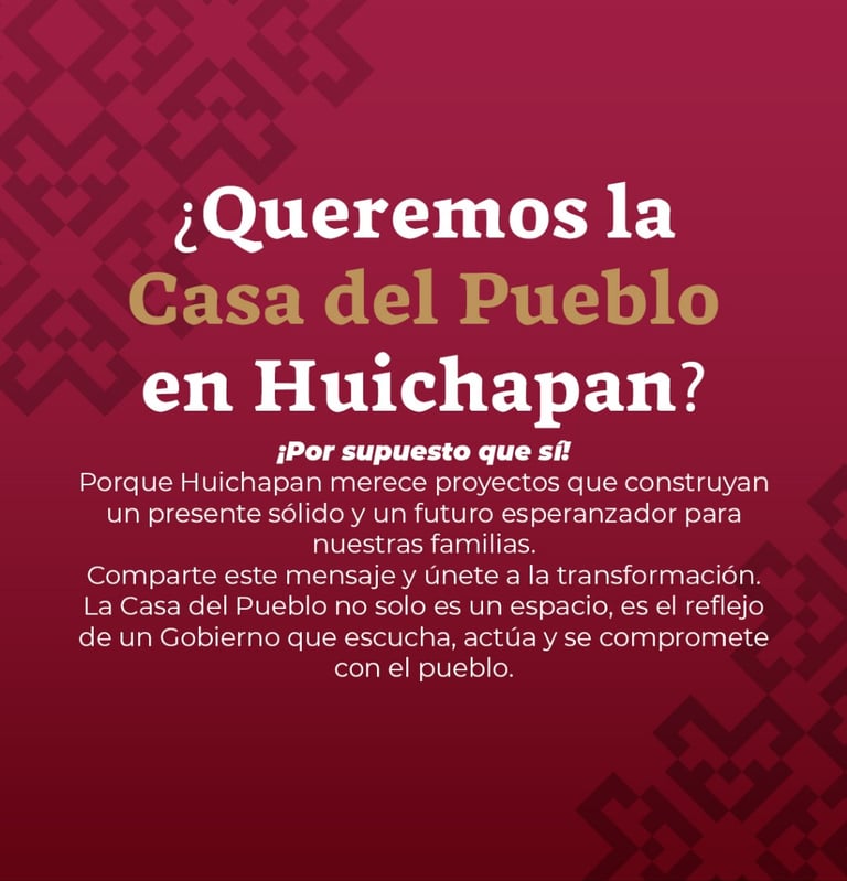 Los ciudadanos de Huichapan tienen ahora la oportunidad de unirse a este esfuerzo y respaldar la instalación de la "Casa del Pueblo". Con su apoyo, este proyecto se consolidará como un símbolo de progreso, inclusión y bienestar para todos los habitantes del municipio.