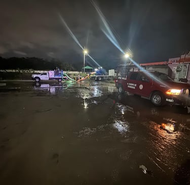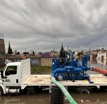 En el fraccionamiento Tuzos, uno de los puntos más afectados, los bomberos trabajaron arduamente para desazolvar y limpiar las zonas inundadas, logrando una reducción significativa en los niveles de agua. En colonias como Parque Urbano San Antonio, Santa Matilde (en Zempoala) y Geovillas, CaasIM desplegó equipos especializados, incluyendo motobombas de gran capacidad y unidades “Vactor” para el desfogue de agua acumulada. En total, más de 30 servidores públicos, apoyados por maquinaria pesada como retroexcavadoras y camiones de volteo, trabajaron en puntos críticos como el Bulevar Felipe Ángeles y el Bulevar Everardo Márquez, asegurando el correcto funcionamiento de rejillas pluviales y facilitando el tránsito vehicular.